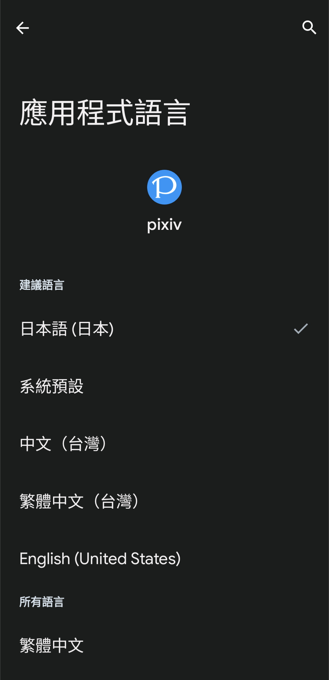 以pixiv為例,若在非日文顯示的情況下,插圖的tag會在旁邊顯示翻譯後的文字,很佔空間又有點礙眼,但只因為這個原因把整個系統調成日文又有點不妥,所以可以用此方法新增支援應用程式語言,來達成只調整pixiv程式的顯示語言。