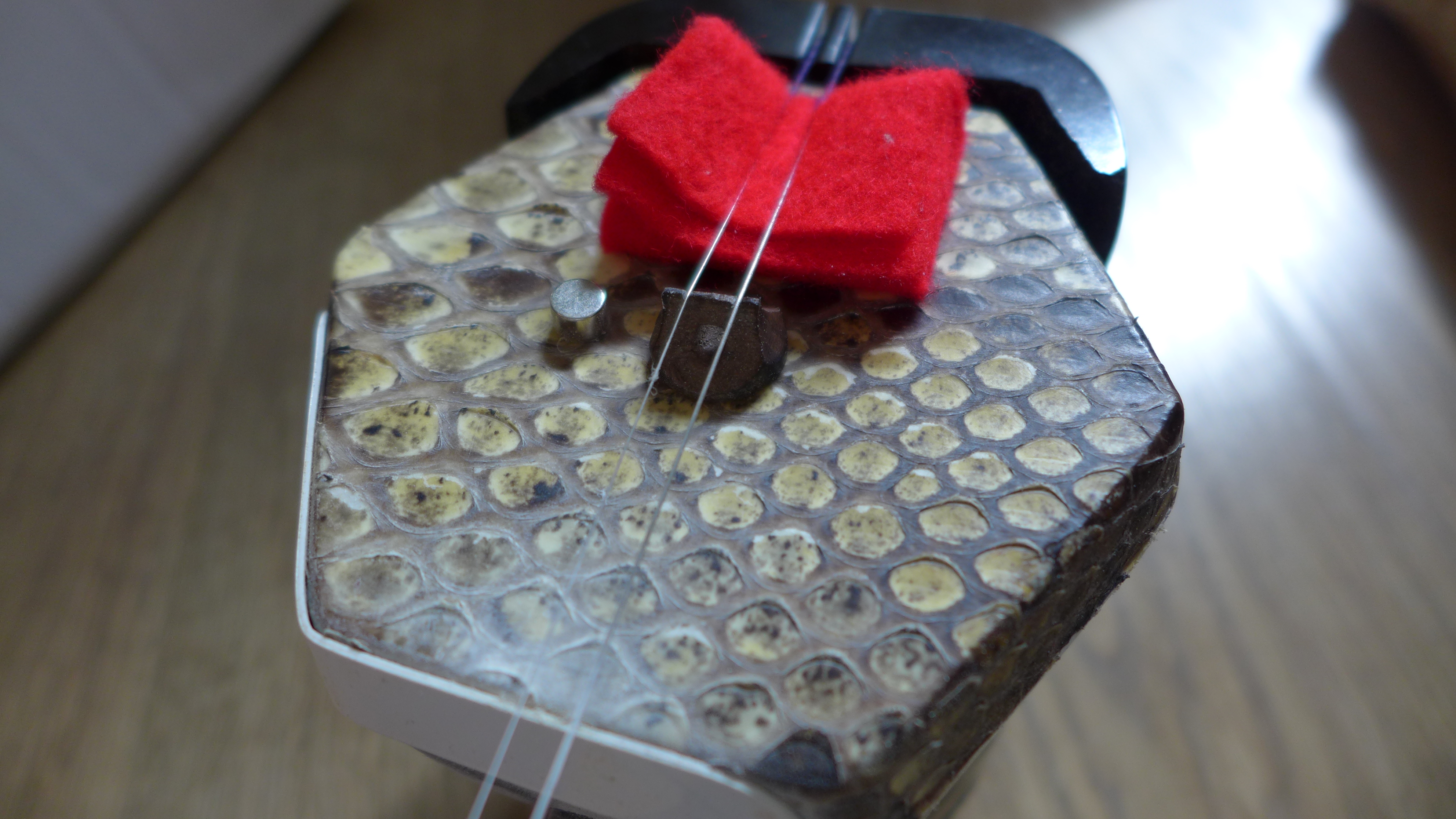 磁鐵黏在蛇皮上(琴馬左邊的那顆)