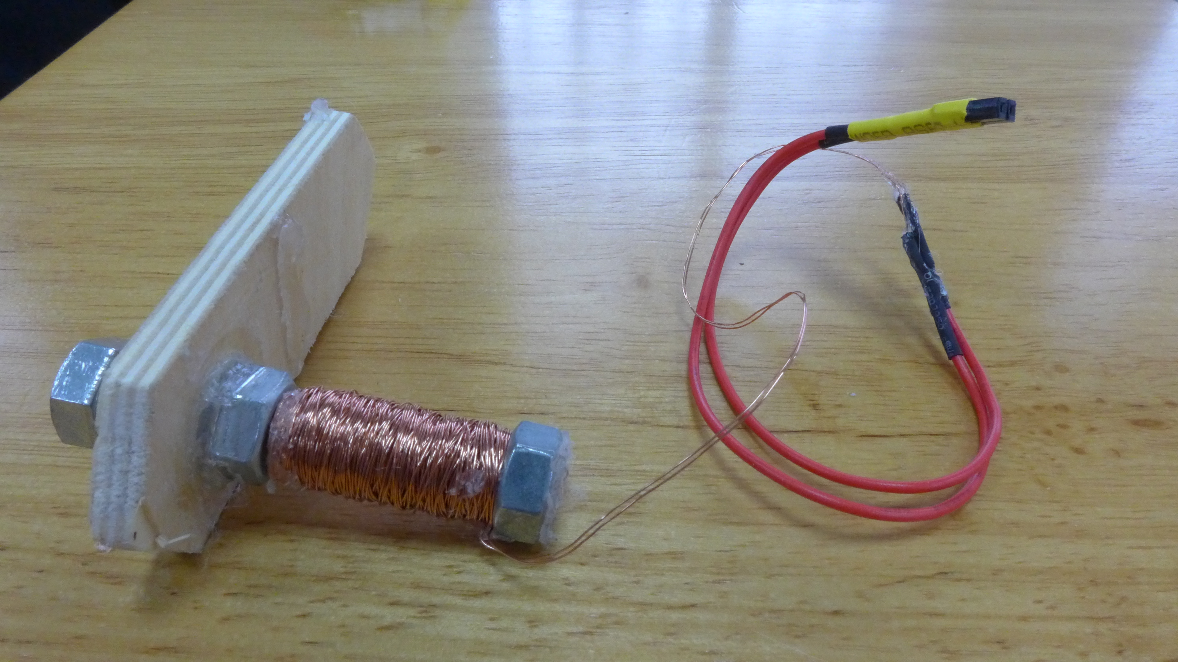 線圈的部分是使用0.23mm的銅線繞在螺絲上,拿電表量阻值大約8Ω。