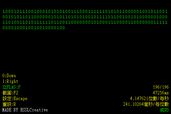 畫面上看到1就按方向鍵右,看到0就按方向鍵下,最後會統計出時間與各項數據在右下角