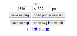 為了能讓輸出的圖片是能自訂大小的,在前期生成時我用SVG來構圖,再用canvas渲染,讓使用者可以調整輸出的圖片大小,所以這個工具可以下載成png或是svg。